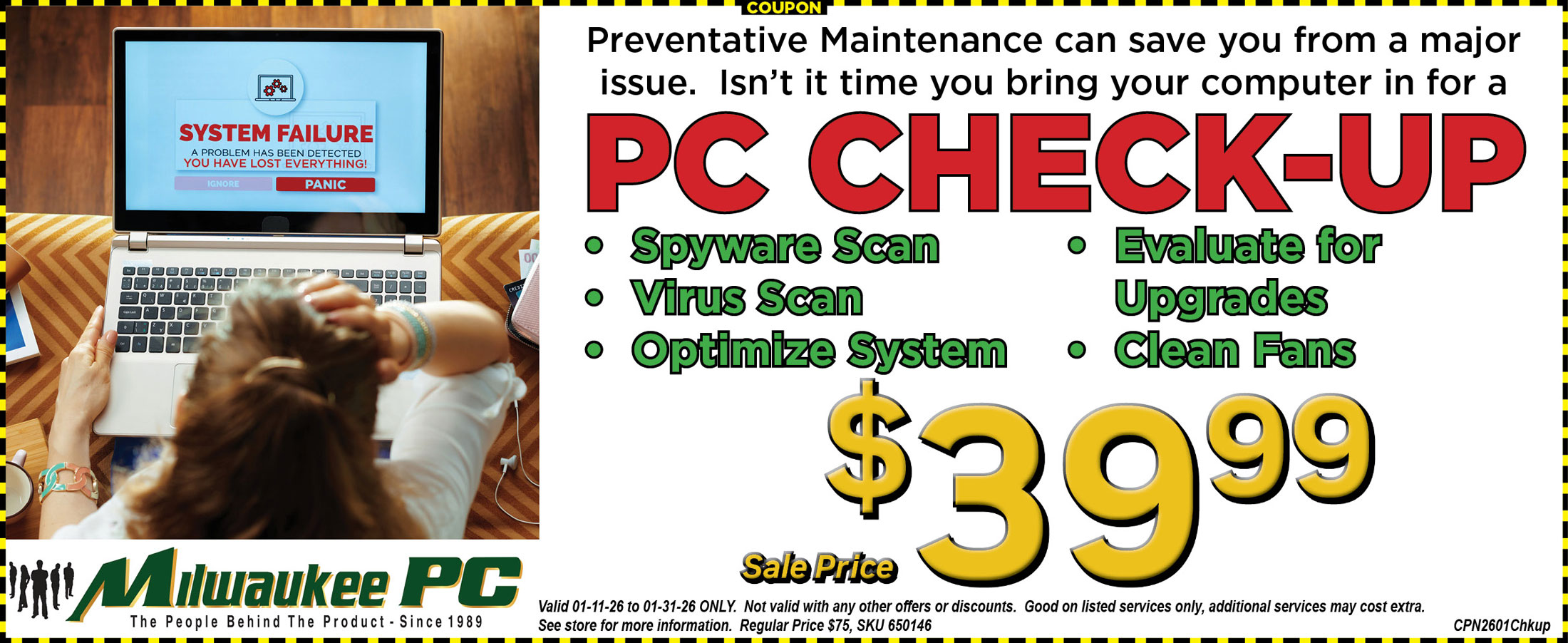 Milwaukee PC offers different special offers regularly to the subscribers of our newsletter. Here you will find the latest offers. We will keep refreshing this page regularly with our latest specials. Make sure you don't miss out! Subscribe to our newsletter at the bottom right of our webpage.