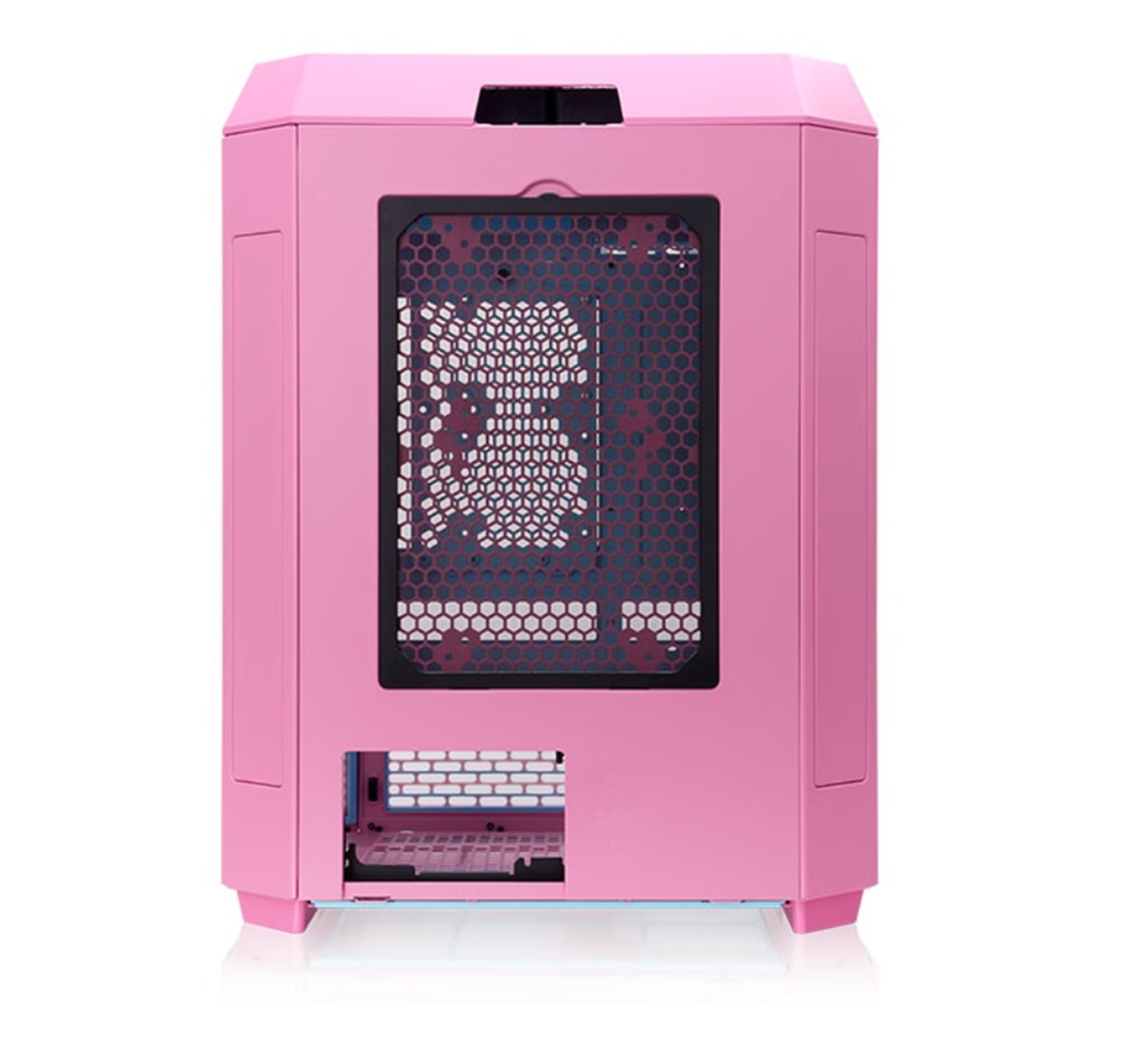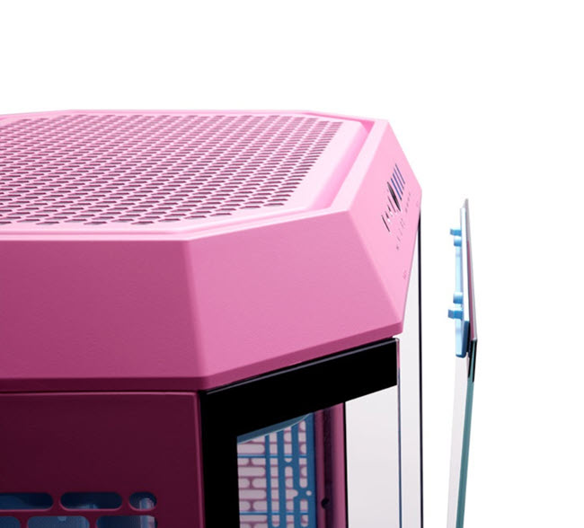 The Tower 600 Bubble Pink features three 3mm tempered glass panels on the front and two perforated panels on each side. All are easily removable without tools.