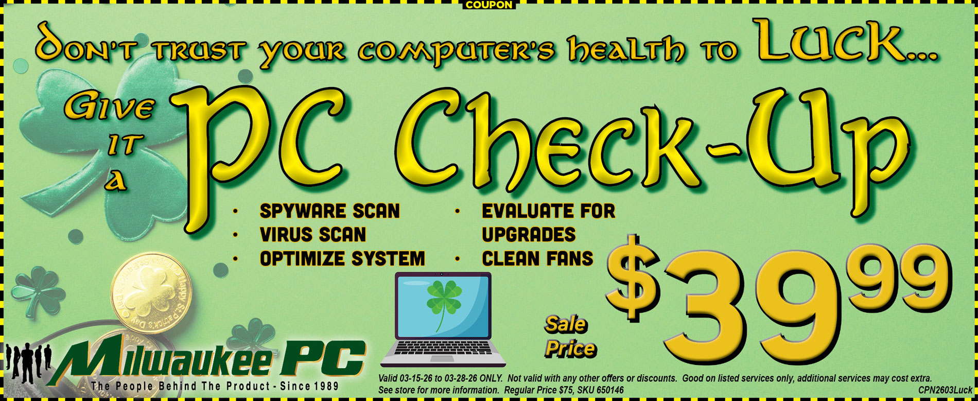 Milwaukee PC offers different special offers regularly to the subscribers of our newsletter. Here you will find the latest offers. We will keep refreshing this page regularly with our latest specials. Make sure you don't miss out! Subscribe to our newsletter at the bottom right of our webpage.